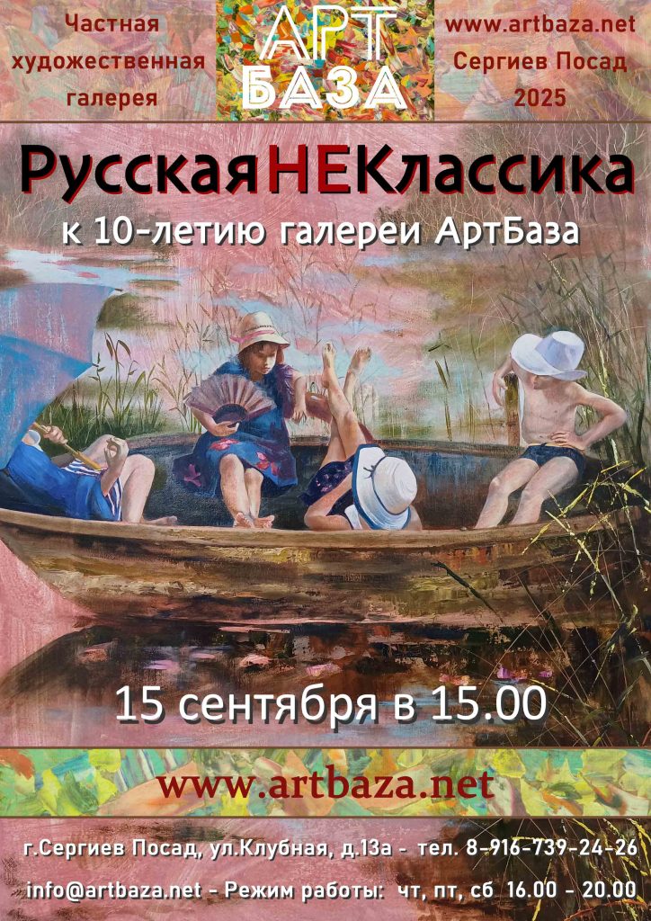15 сентября мы с гордостью отмечаем знаменательное событие — десятилетие со дня основания нашей галереи. За эти десять лет мы прошли путь от небольшого проекта до одного из ведущих центров современного искусства, объединяющего талантливых художников и любителей искусства со всей страны и за её пределами.15 сентября 2015 года в 15.00 состоялось открытие первой выставки в галерее — 15 сентября 2025 года в 15.00 состоится открытие 115-ой выставки — «Русская НеКлассика».К 10-летию галереи мы приготовили для наших зрителей не совсем обычную выставку. В нашем контексте НеКлассика — это то, что не классика в русской живописи. Строгой комиссией отобраны 100 работ из коллекци галереи и частной коллекции С.А.Пахомова. Предпочтение отдавалось эмоциональным, фигуративным, философским произведениям.
