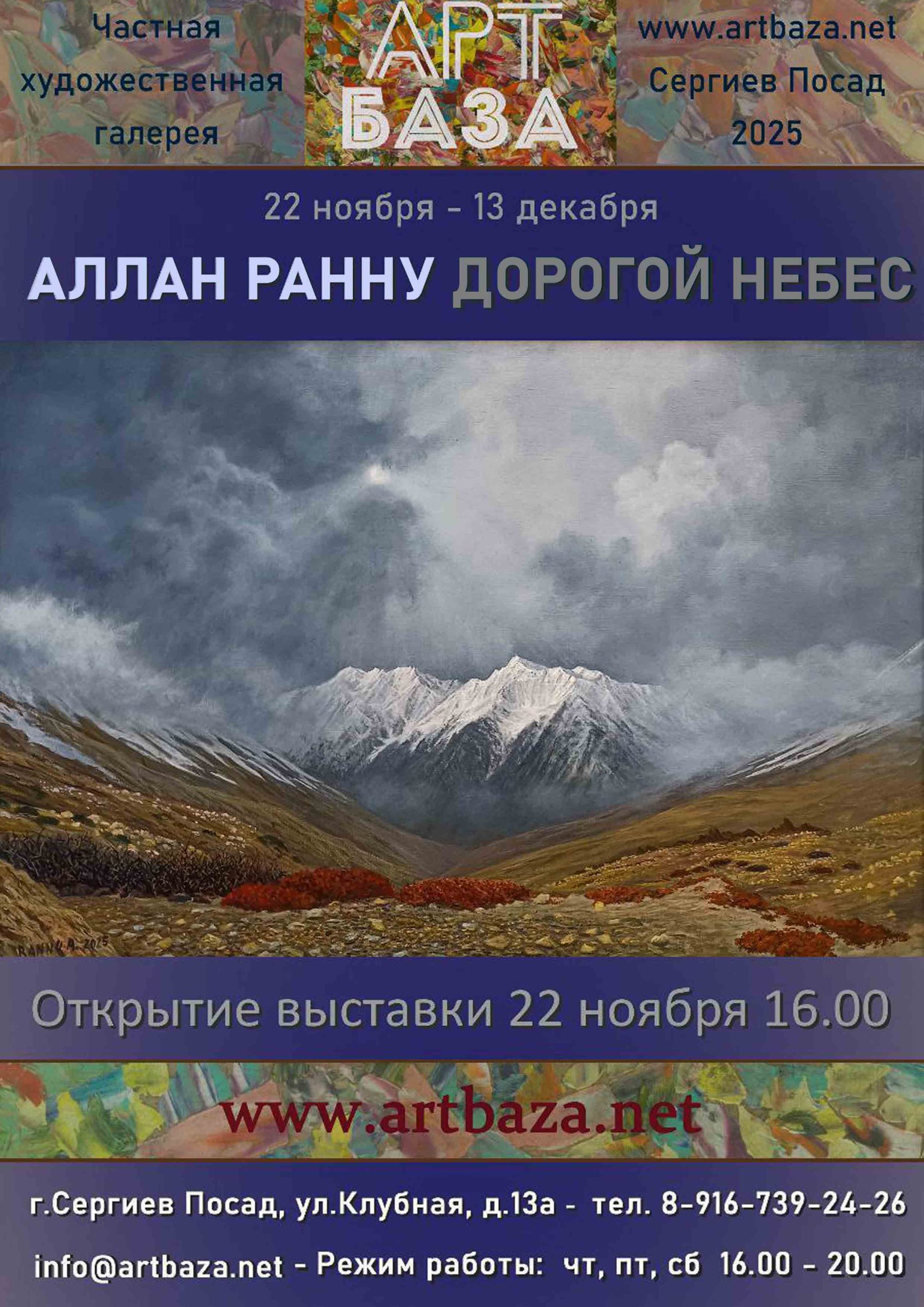 Дорогие друзья! Приглашаем Вас 22 ноября в 16.00 в галерею АртБаза на открытие персональной выставки «Дорогой небес» художника и путешественника Аллана Ранну.
